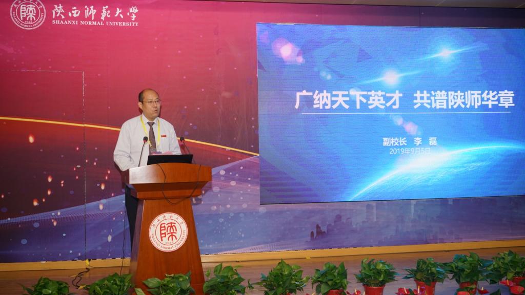 李磊副校长作了题为“广纳天下英才,共谱陕师华章”的主题报告。他从学校的校情、发展平台和发展方略三个方面向与会学者们展示了学校招贤纳士的决心和热情,针对学者们关心的学科平台、科研平台、生活平台等问题进行了详细介绍和政策解读,并向与会学者讲解了未来五年学校内涵式发展的工作主线。